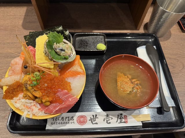 海鮮丼を食べて、のあちゃんと2人の似顔絵を描いてもらいました。✏️