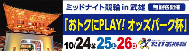 佐世保ミッドナイト競輪のおトクにPLAYオッズパーク杯が10月24日~26日の日程で開催される。