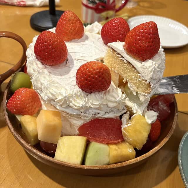 お家でも、友達とクリスマスケーキを作って食べました🎵