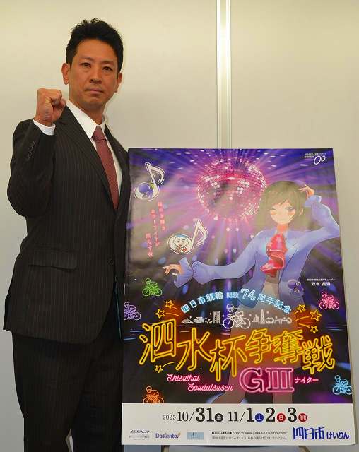 四日市競輪のPR隊が10月28日、三重支部の伊藤世哉(87期)=写真=を連れてスポニチ名古屋オフィスを訪れた。
