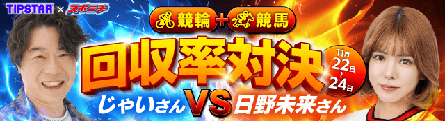 TIPSTAR×スポニチコラボ企画第6弾「11月22~24日の競輪と競馬の総合回収率対決」は2日目を迎える。